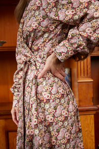 Hier gaat mijn hart sneller van kloppen… Olivia met lange mouwen, verfijnd tot in het kleinste detail. De plooien op de schouders zijn smal, waardoor de mouwen om je heen dansen, maar toch de juiste balans kennen. Niet te ruim, wel dansend. Haar volant is dubbel gevoerd, zodat je altijd tegen de mooie kant van de stof aankijkt. De doorhaal in de taille maakt dat je kunt spelen met je omvang, waarbij de overslag van heup tot heup reikt. Celine tikt dit seizoen de meeste stofmeters aan, wat haar zeer luxe maakt in uitstraling en gevoel, want zoals ik altijd zeg: we doen geen concessies… Ze valt als een droom!