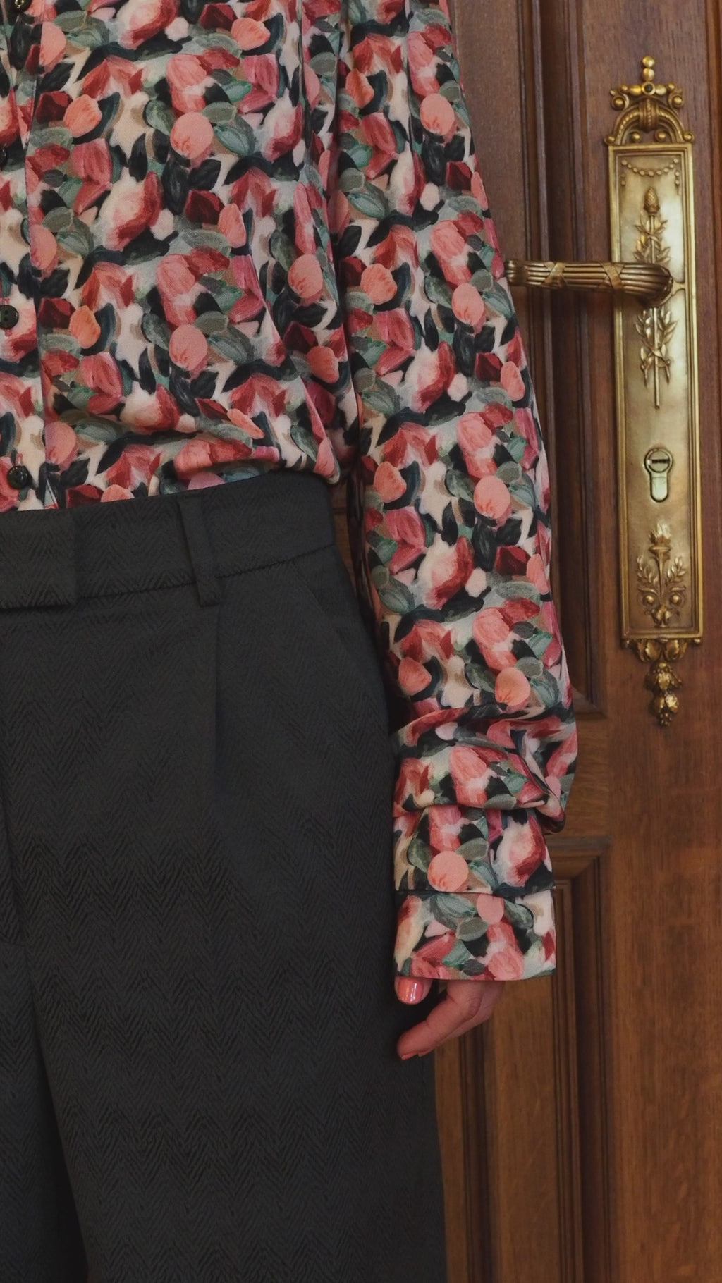 Omdat we Coco het liefste in iedere print en in iedere stof wensen! Perfect zoals ze is. The Classic. Met haar rufflekraag, prachtig schouderdetail en volantmouwen is Coco er een die je het liefste iedere dag pakt. Het elastiek in de boord van haar mouw zorgt ervoor dat je je mouwen gemakkelijk opstroopt. Coco hebben we al in verschillende prints gemaakt, in iedere variant vind je de mooiste kleurknopen terug. Dit seizoen in Mulberry en Old Green. Haar volant op de mouwen is dubbel gevoerd waardoor je altijd de mooiste kant van de stof ziet, welke beweging je ook maakt.